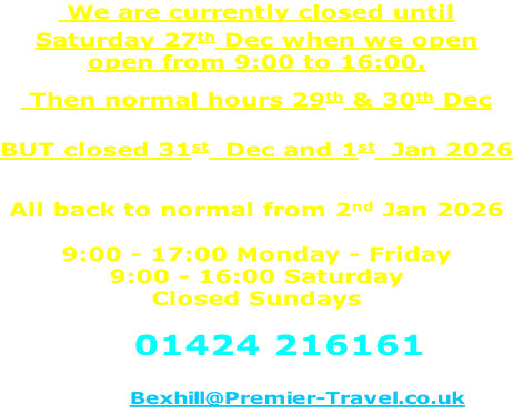 or email Bexhill@Premier-Travel.co.uk A warm welcome awaits you from our team.