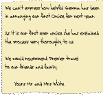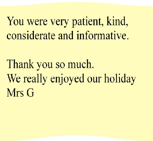 Testimonials Page - what our customers have to say. (Just rest your mouse on a letter to read it.)